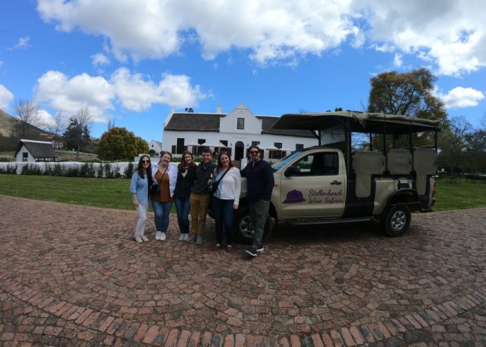A wine tour with a difference. The Stellenbosch Wine Safari is a guided wine tour in an open safari vehicle visiting selected wine farms in Stellenbosch, South Africa, combining wine tastings, vineyard scenery, and educational insights into the region’s winemaking